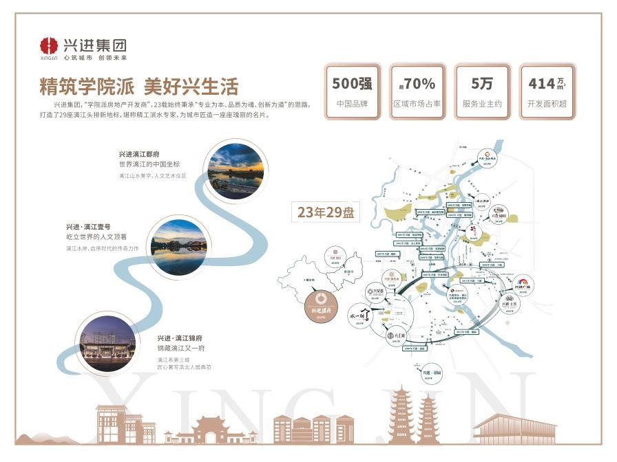 興進(jìn)集團(tuán)于漓江邊潛心23載深研濱水作品,被譽(yù)為有人文情懷的“學(xué)院派房地產(chǎn)開(kāi)發(fā)商”,是桂林家喻戶(hù)曉的品牌實(shí)力開(kāi)發(fā)商和城市運(yùn)營(yíng)者 。在23年的光陰歷練中,從漓江郡府——屹立世界的人文頂著,到漓江壹號(hào)——世界漓江的中國(guó)坐標(biāo),23年匠造29城;興進(jìn)集團(tuán)為城市水岸敬獻(xiàn)了數(shù)座人居范本,每一次皆引領(lǐng)區(qū)域乃至城市人居的煥新升級(jí)。