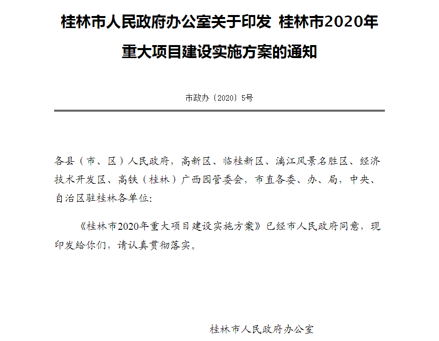 ▲桂林市2020年重大項目建設(shè)實施方案通知截圖