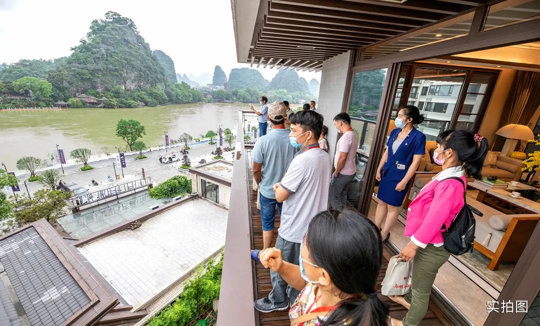 漓江風(fēng)光讓人眼前一亮,園中景色同樣令人沉醉。漓江郡府園林,重現(xiàn)桂林八景的盛世風(fēng)貌,漫步于庭院,便能體味別樣的桂林山水文化?!疤懒?,家樓下的風(fēng)景就那么好,十分憧憬以后在興進的生活。”不少賓客表達了自己的喜愛,紛紛拿出手機拍下美景。