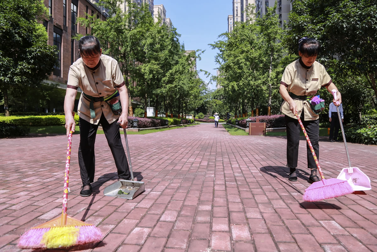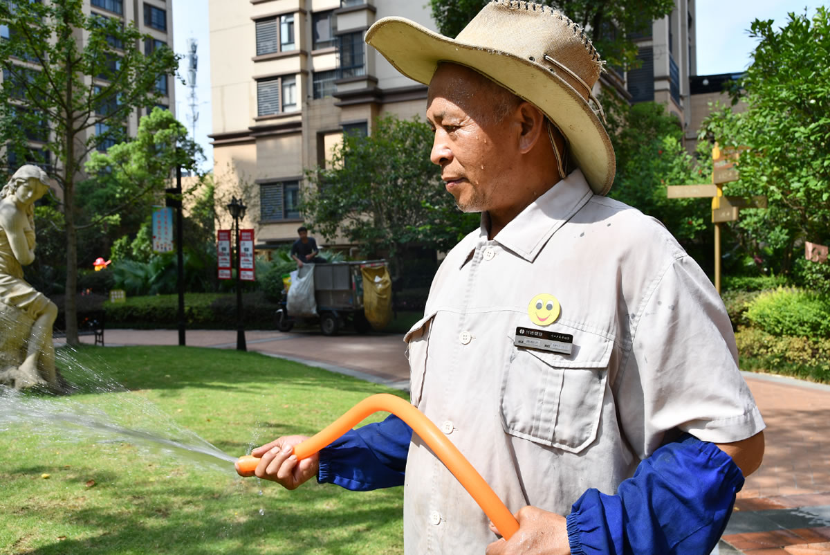 高溫天氣下興進各小區(qū)加強了衛(wèi)生保潔工作