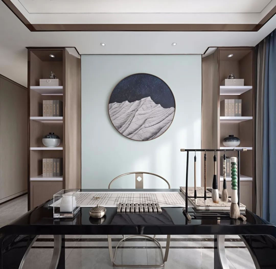 書房丨方與圓的視覺在書房中進行了和諧的配比,儒雅的色彩與木質(zhì)的純粹,承載著無限的故事和詩意,通透軒敞,節(jié)奏利落,光影藝術(shù),讓這里閑坐即擁有云卷云舒的暢意,品茗即享受靜觀風雨的淋漓,靜享花開景明,待看四時光景。