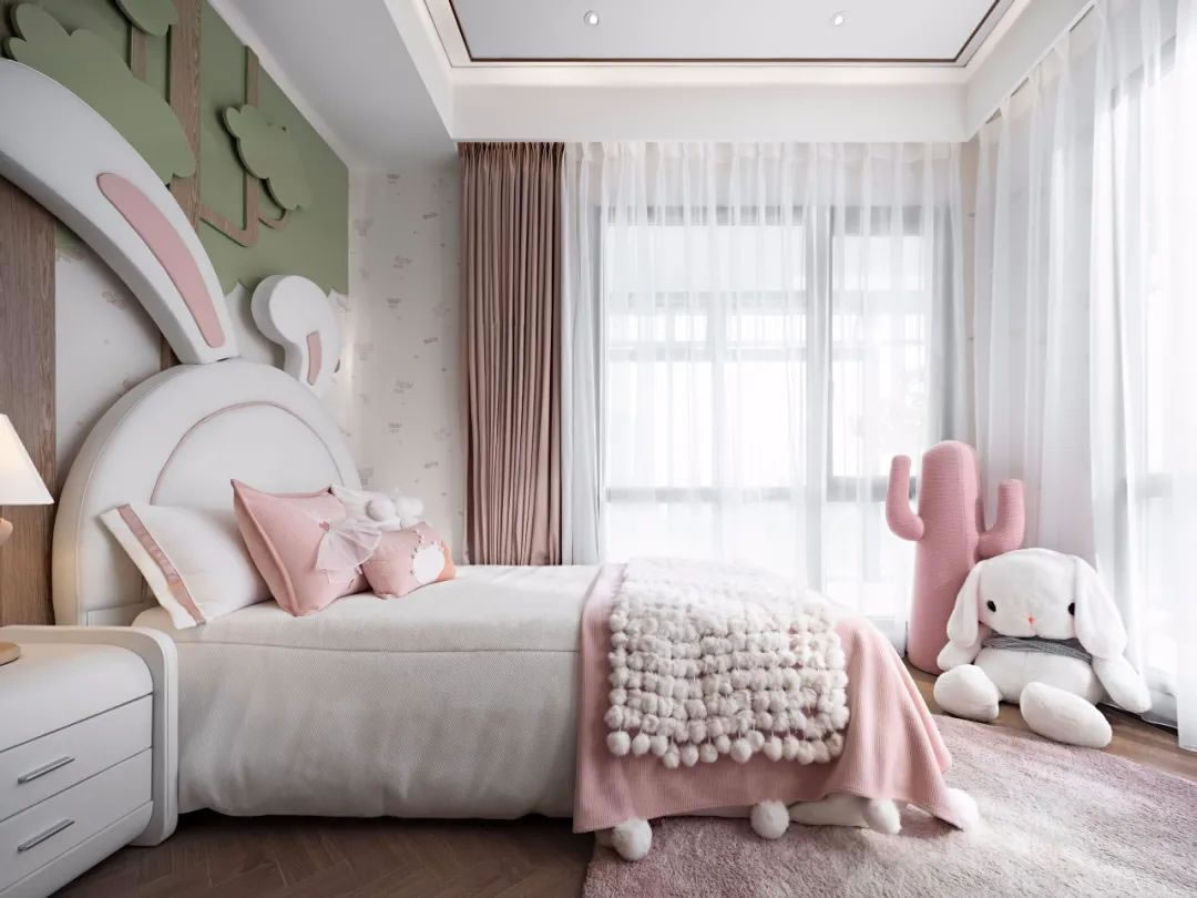 兒童房丨寄趣于童真的比得兔,在這個空間的原野上奔跑著,粉的色彩傳遞著活力,光的通透陪伴著成長,自由的動線塑造,玩偶的生動精巧,讓陪伴不止是一個空間的塑造。