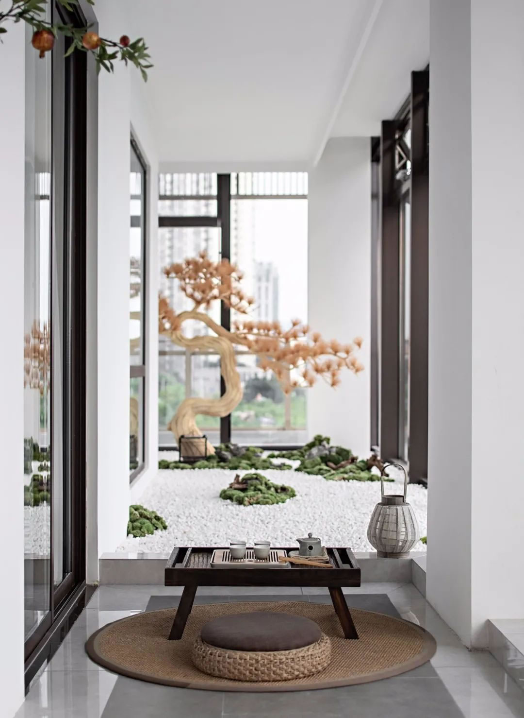 電梯廳·游園丨比起快節(jié)奏里的繁華似錦,方正與圓融塑造的空間意境,更充滿無限的意趣,隨性的倒掛松柏,鋪陳的禪石置景,讓移步的樂趣同樣擁有著靜謐的靈動,層層遞進,抵達至極的從容。
