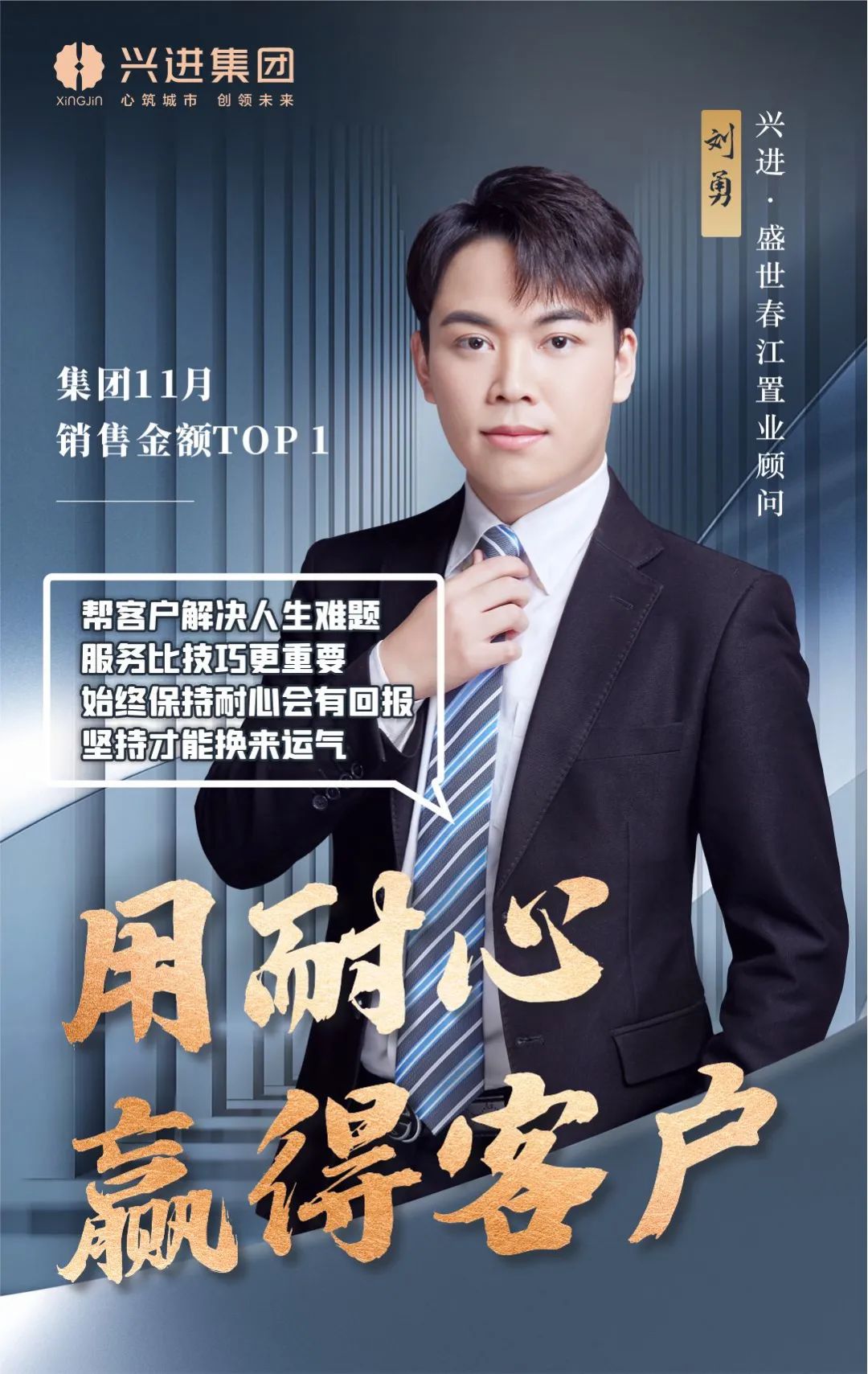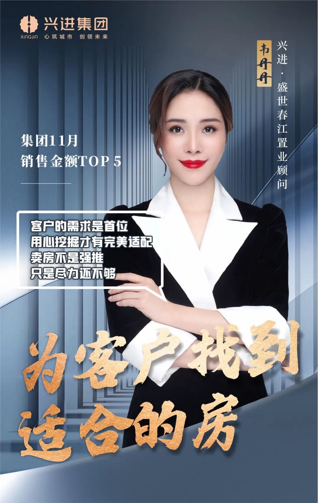 興進(jìn)·盛世春江營銷團(tuán)隊,11月獲得集團(tuán)優(yōu)秀團(tuán)隊殊榮,集團(tuán)銷售金額前5名均為團(tuán)隊成員,他們用專業(yè)與溫情,成為客戶的美好生活規(guī)劃師。