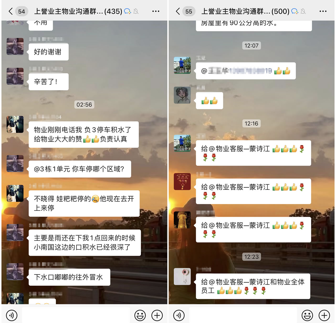 物業(yè)人員在接到暴雨預(yù)警的第一時間,全體物業(yè)人立即著手防洪工作,領(lǐng)導(dǎo)下達指揮,各項目小區(qū)積極響應(yīng),為防洪做好充足準備。各項目物業(yè)人員通過業(yè)主群/致電業(yè)主及時挪車;客服人員積極與業(yè)主溝通,提醒業(yè)主做好防洪準備;為了防止地下車庫雨水倒灌,搶險工作人員連夜加裝防洪沙袋,排水溝排查等工作。