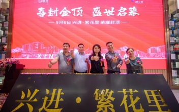 興進(jìn)·繁花里封頂儀式在項(xiàng)目營(yíng)銷中心隆重舉行,興進(jìn)集團(tuán)副總裁兼商業(yè)公司總裁尹靜、興進(jìn)集團(tuán)商業(yè)開發(fā)公司總經(jīng)理盧永發(fā)、廣西五建一分副總經(jīng)理鄧玉光、桂工監(jiān)理副總經(jīng)理徐勝芳、興進(jìn)繁花里業(yè)主代表及各主流媒體蒞臨現(xiàn)場(chǎng)觀禮,共同見證這一激動(dòng)人心的時(shí)刻。