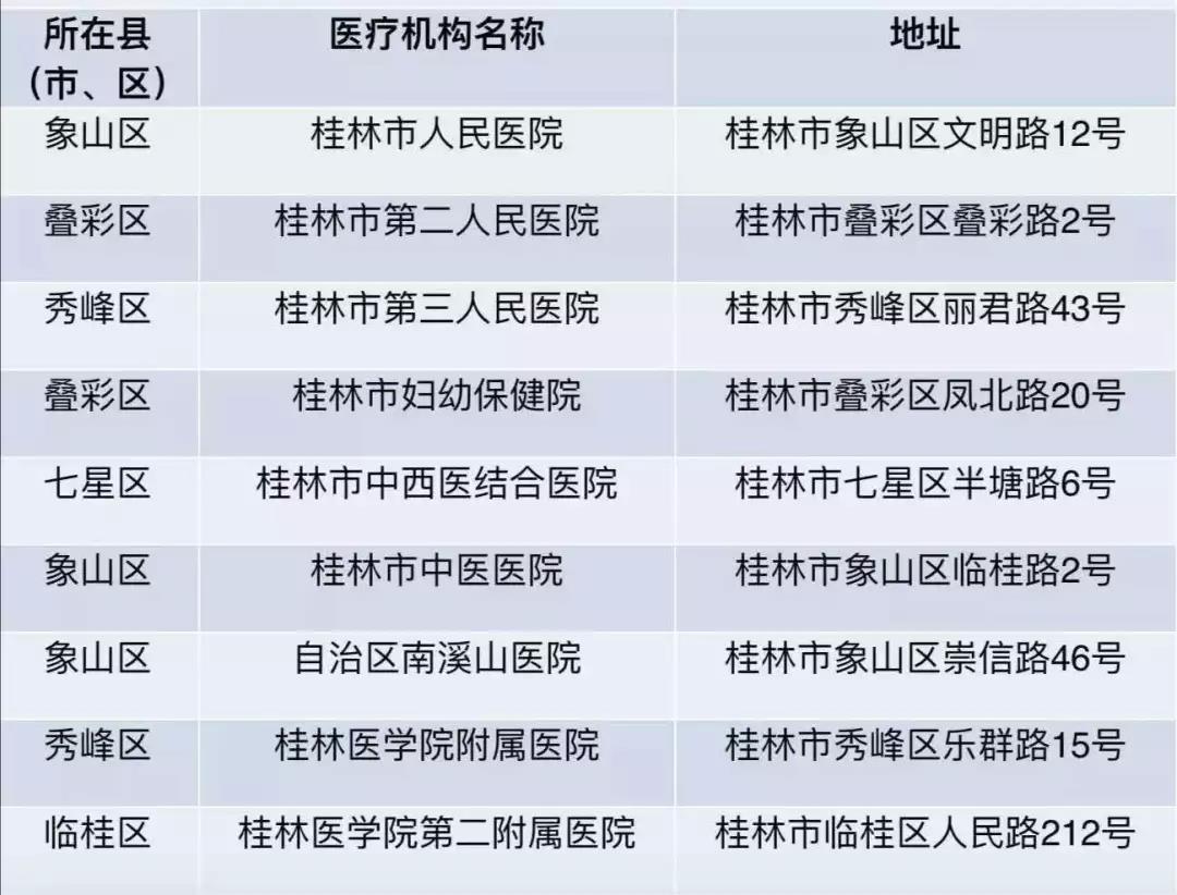 桂林市設(shè)有發(fā)熱門(mén)診的醫(yī)療機(jī)構(gòu)名單
