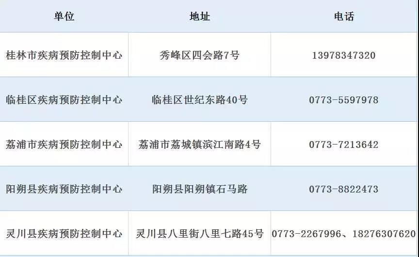 桂林市各級(jí)疾控中心值班信息